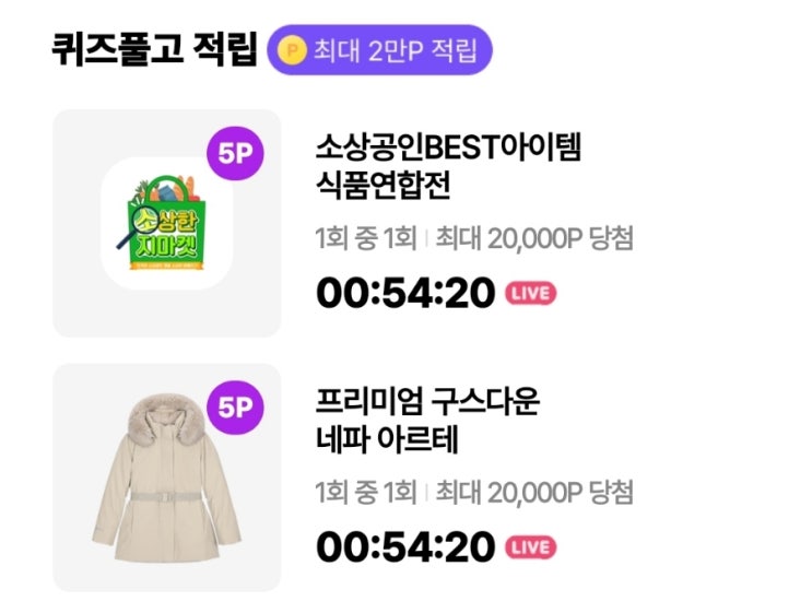 11월22일 20시 오퀴즈 정답 OK Cashbag(오케이캐쉬백 오퀴즈 정답) - 19시 밀크코인 포인트부루마블, 20시 소상한지마켓ㄱㅇ, 네파 아르떼ㄱㅅㅋㅌ