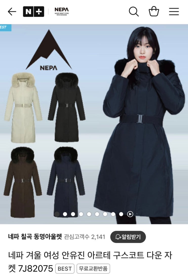 [내돈내산] 짱 날씬해보이는♥ 네파 여성 아르떼 TR 미드다운자켓 7J82077
