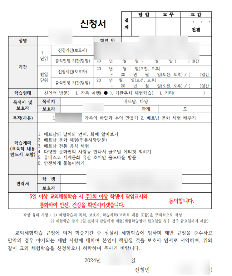 아이랑 다낭여행;) 다낭 교외체험학습신청서, 해외여행 교외체험학습보고서