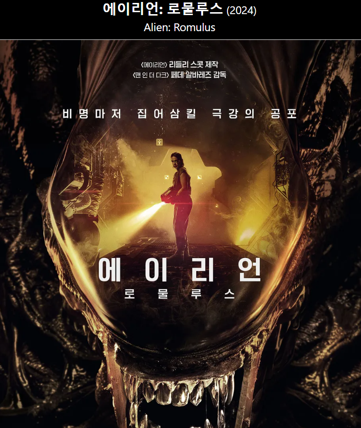 <에일리언 : 로물루스> 일반인이 에일리언을 만난다면?(스포있음)