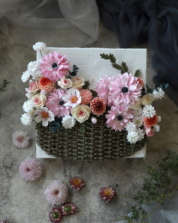 유튜브 영상) 클레이크림 플라워 3D 캔버스 꽃바구니 장식