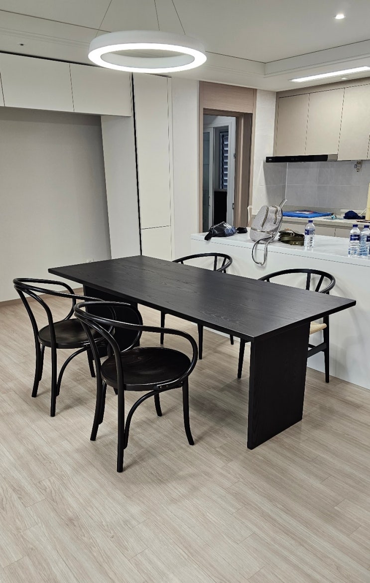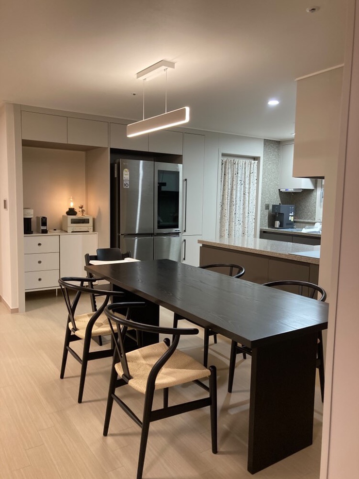 실용과 감성을 모두 담은 30평 아파트 주방에 블랙 애쉬 원목식탁