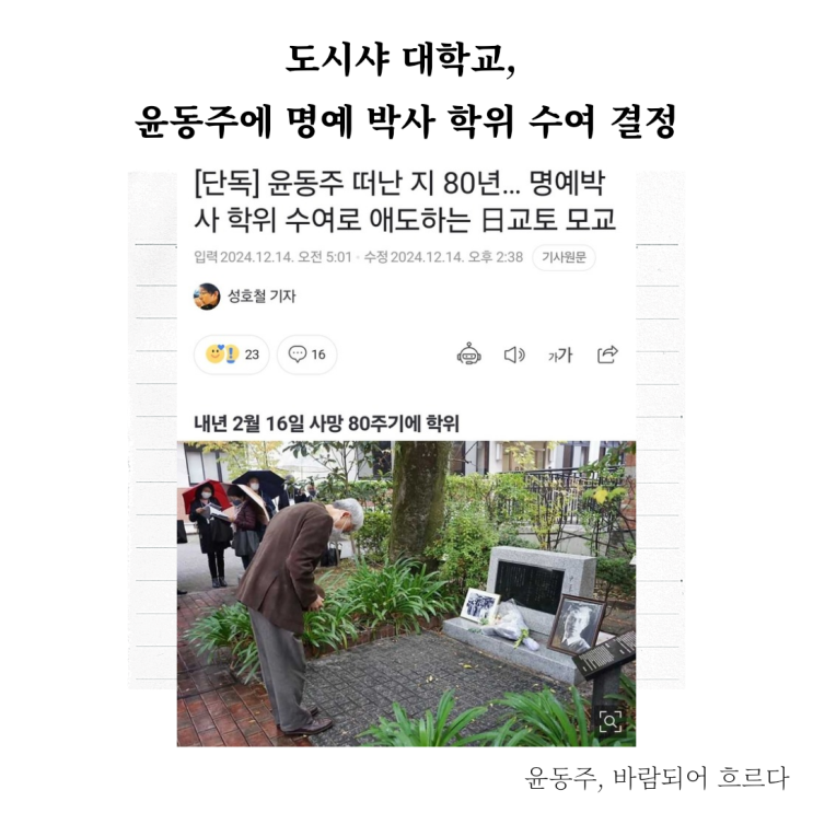 도시샤 대학교, 순국 80주기 맞는 윤동주에 명예 박사 학위 수여