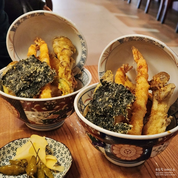 달달 짭조름한 밥 위에 바삭하게 튀긴 튀김을 올린 텐동 한 그릇 든든한 점심 한 끼로 제격이죠. 친구 회사...