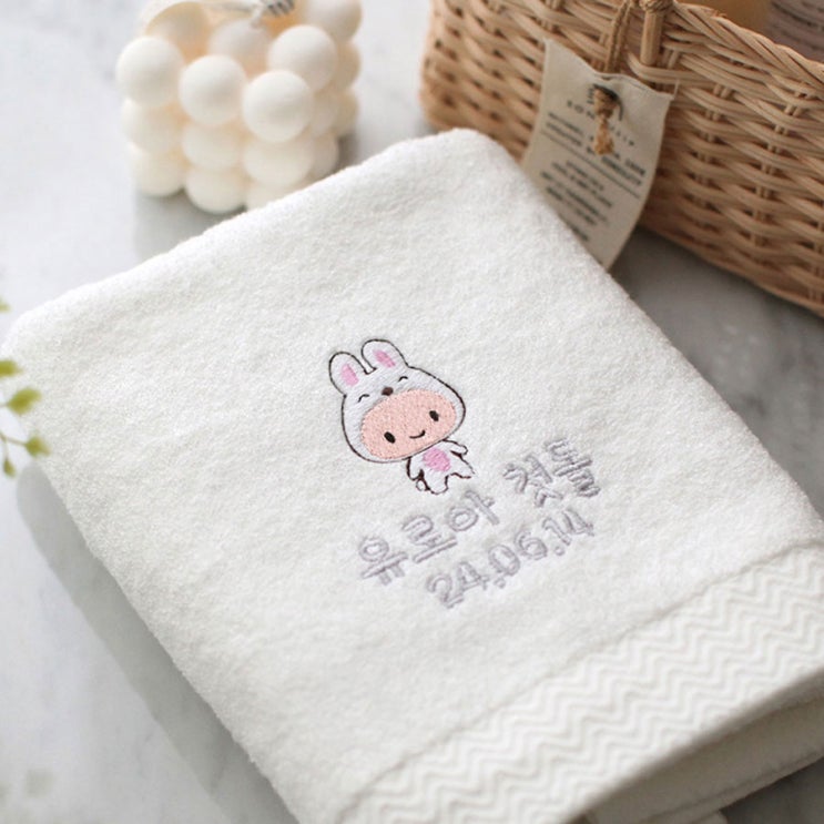 【토끼띠자수수건】 고급답례품, 답례수건, 수건답례품, 답례품수건, 30수수건, 40수수건, 뱀부얀, 코마사, 첫돌수건, 첫돌답례품, 돌답례품, 수민맘