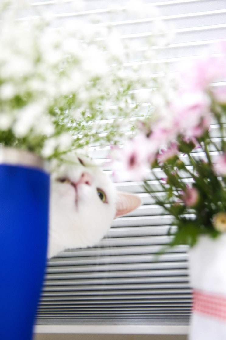 고양이에게 위험한 소국과 안개꽃을 선물받았다