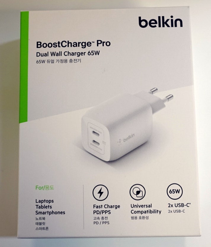 부스트차지 프로 65W 듀얼 USB-C PPS GaN 고속 충전기 벨킨 벨킨 65W 듀얼 충전기다. 단일로 사...