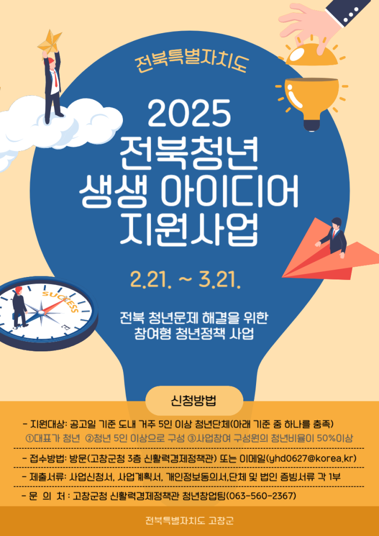 ?2025년 전북 청년 생생아이디어 지원사업 참여단체 모집 ✳청년이 구상·제안한 사업을 적극적으로 지원...