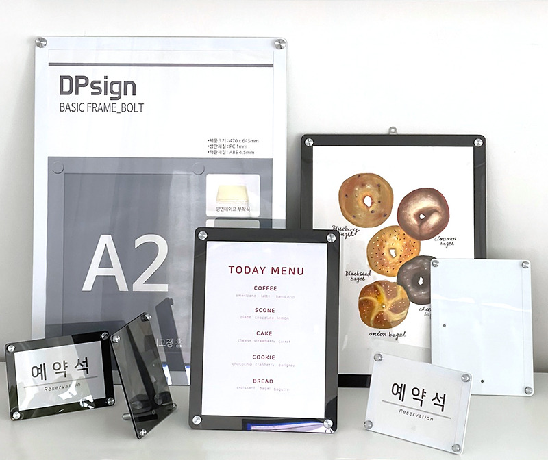 인테리어액자 아크릴 메뉴판 상장액자 고급형 편리한 자석액자 사이즈 4x6 5x7 A5 A4 A3 A2 A1 벽부착, 벽걸이, 탁상용스탠드, 롱스탠드 다양하게 활용가능합니다. https://smartstore.naver.com/dpsign/products/3