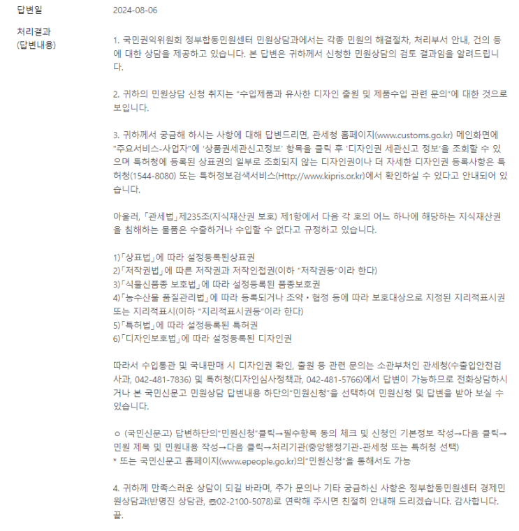 오늘 규조토발매트 디자인권이 없으면 관세청에서 통관이 안될수도 있다고. 그래서 작년에 디자인권 우선 ...