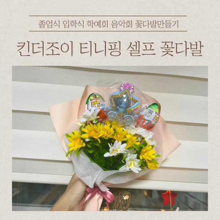 다이소 셀프 꽃다발 만들기 :: 졸업식 입학식 학예회 음악회 킨더조이 티니핑 꽃다발만드는 방법