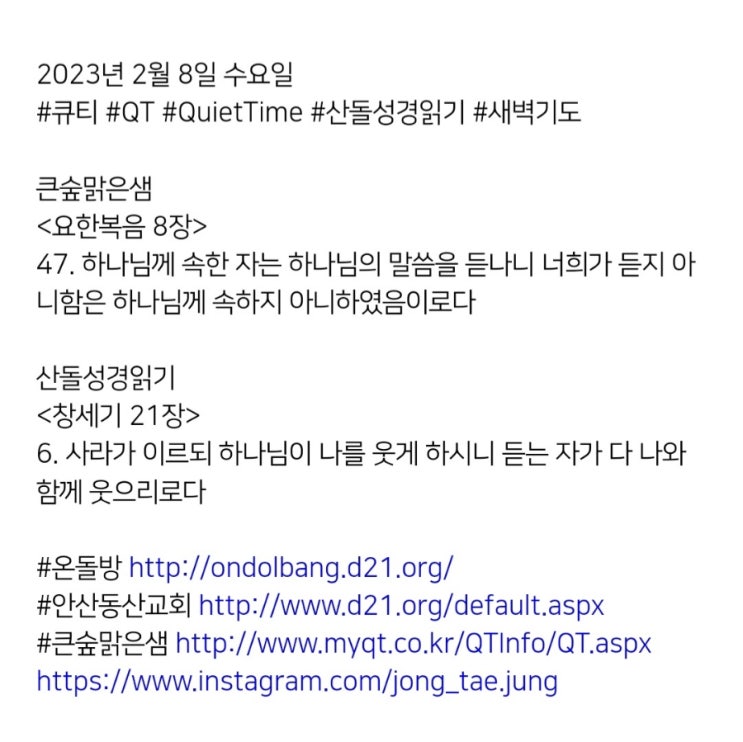 2023년 2월 8일 수요일 #큐티 #QT #QuietTime #산돌성경읽기 #새벽기도