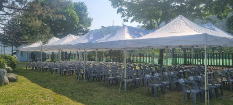 공주 천막대여 설치 했습니다 공주 파크골프 대회 행사 준비 했구요 운영본부와 식사공간에 천막대여 및 설...