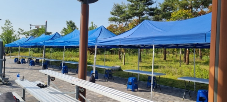 세종 캐노피천막 렌탈 설치 왔습니다 세종 청소년센터에서 체육행사가 있어서 캐노피천막 렌탈 설치 및 행...