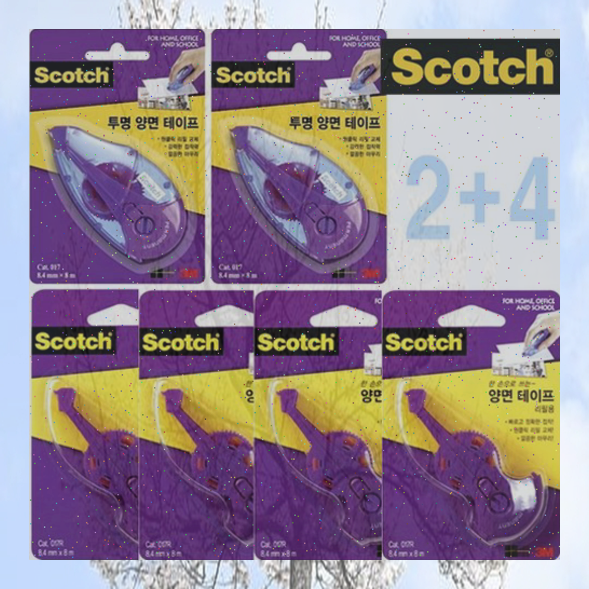 3M 투명 양면테이프 017 본체 리필 세트, 017 본체2개+017R 리필4개 세트 스카치 투명 양면테이프 8.4mm ...