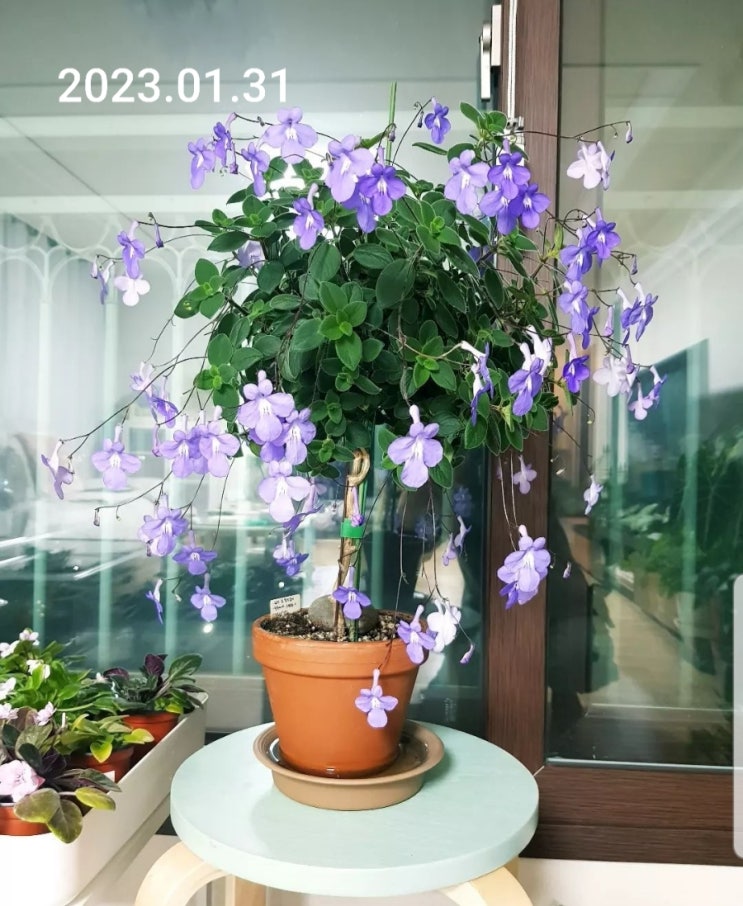 인스타 이웃님께 작년 봄 나눔받았던 #제주애기모람 이예요 무럭무럭 자라서 큰 집으로 이사 시켰어요^^ 집...