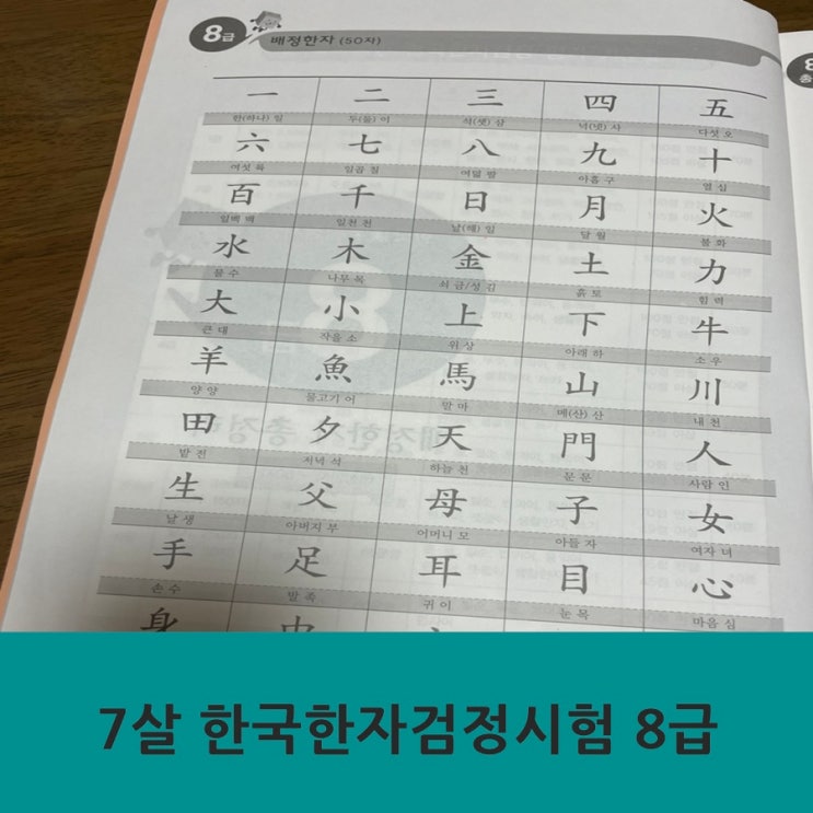 7살 한자시험 한국한자검정시험 8급 후기