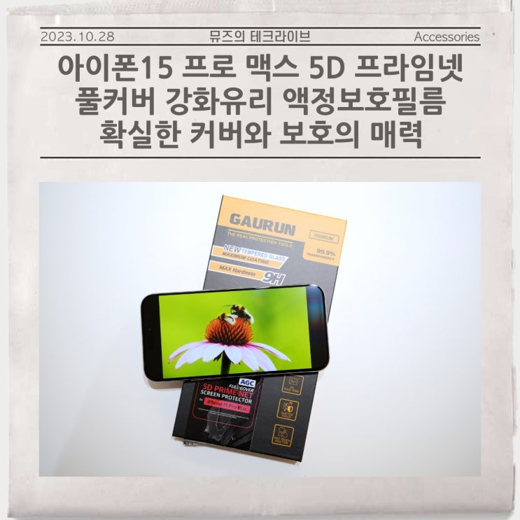 아이폰15 프로 맥스 5D 프라임넷 풀커버 강화유리 액정보호필름. 확실한 커버와 보호의 매력