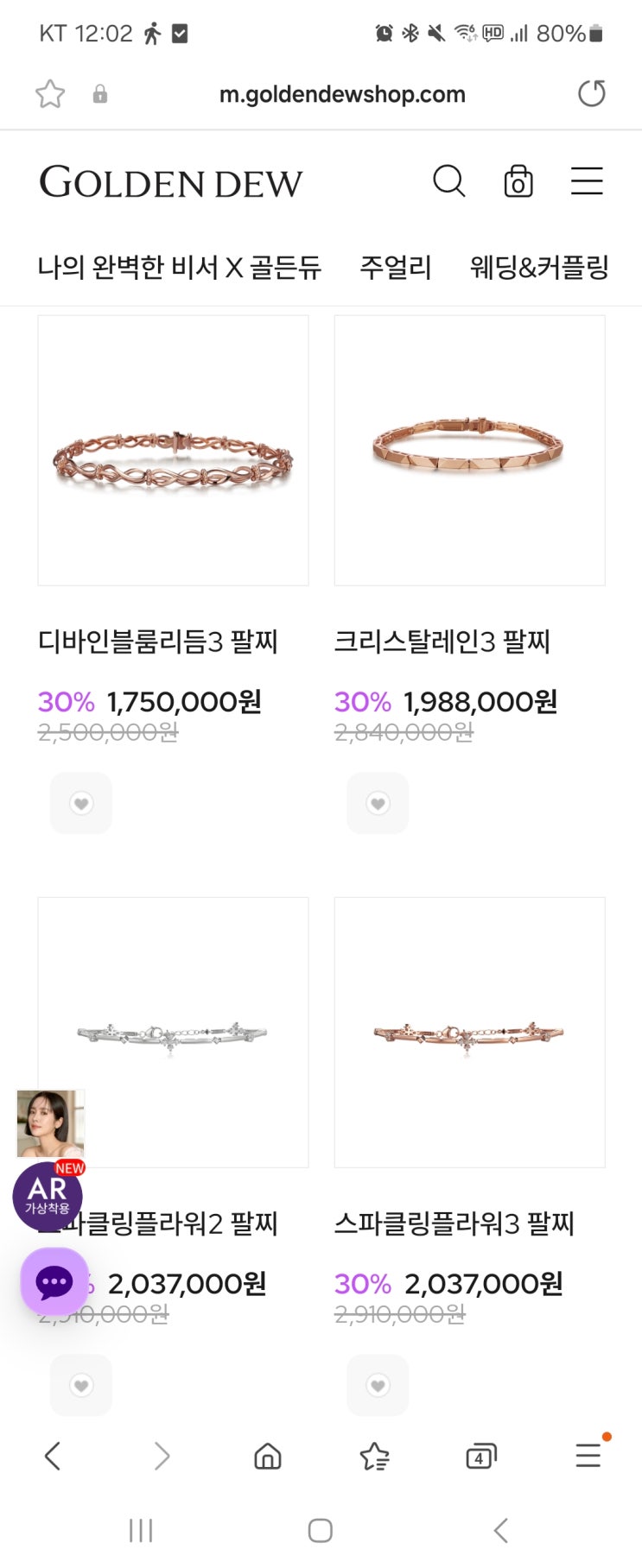 작년 여름에 구매한 스파클링 플라워 팔찌. 몇 달 만에 가격이 많이 올랐다. 나는 117만 원 정도에 머나먼 ...