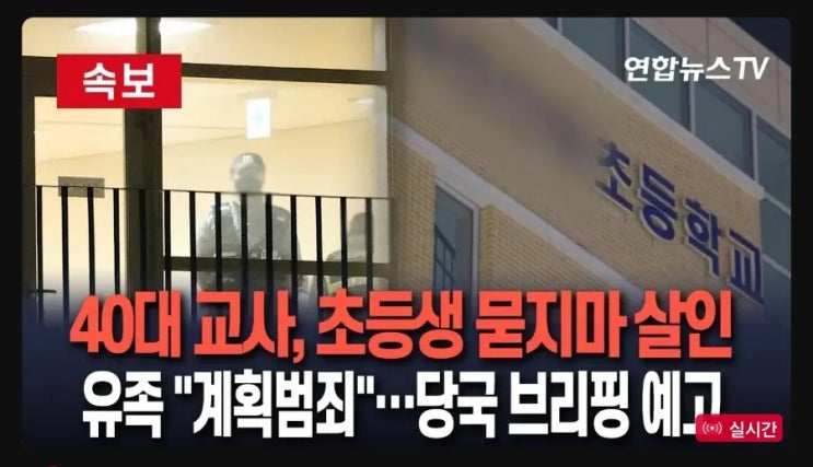 우리나라 교사, 미친 것들 한둘이. 아닌건가? 대전의 40대 교사, 칼로 8살 초등학생 묻지마 살인한 사건 발...