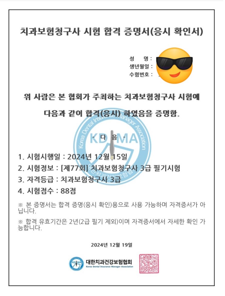 20241215(일) 치과경력단절녀의 제 77회 치과보험청구사 3급 시험 후기 서울