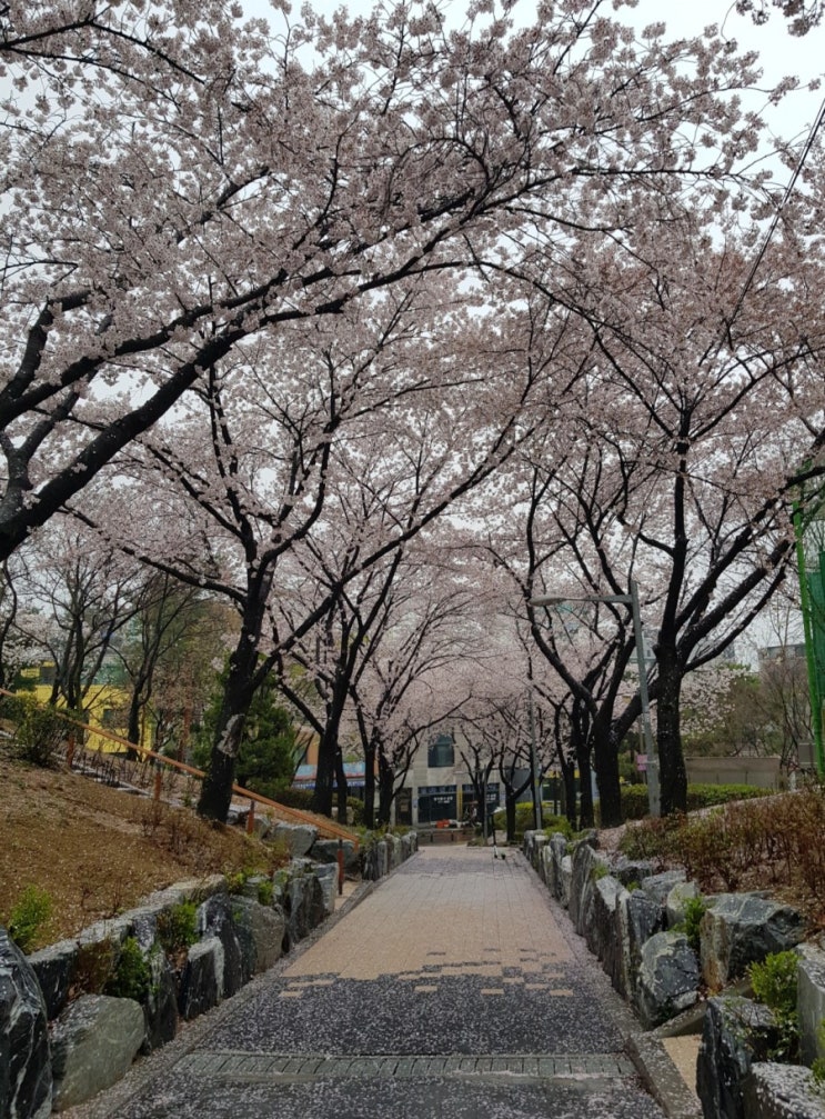 알고보니 집 앞 공원이 벚꽃 명소네. 벚꽃이 다 떨어지기 전에.. 비오는 오늘 한적하니 좋다. 빽다방 피치...