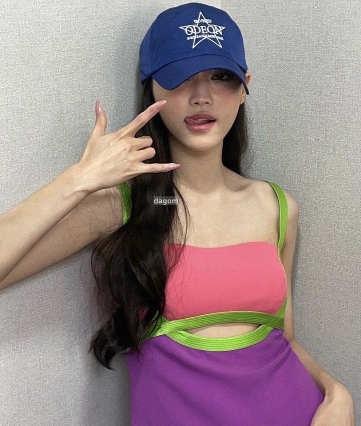 오마이걸 유아 형광빛 도는 화려한 컬러 조합의 끈나시원피스, 캡모자와 함께 핫한 여름원피스 패션 보여주...