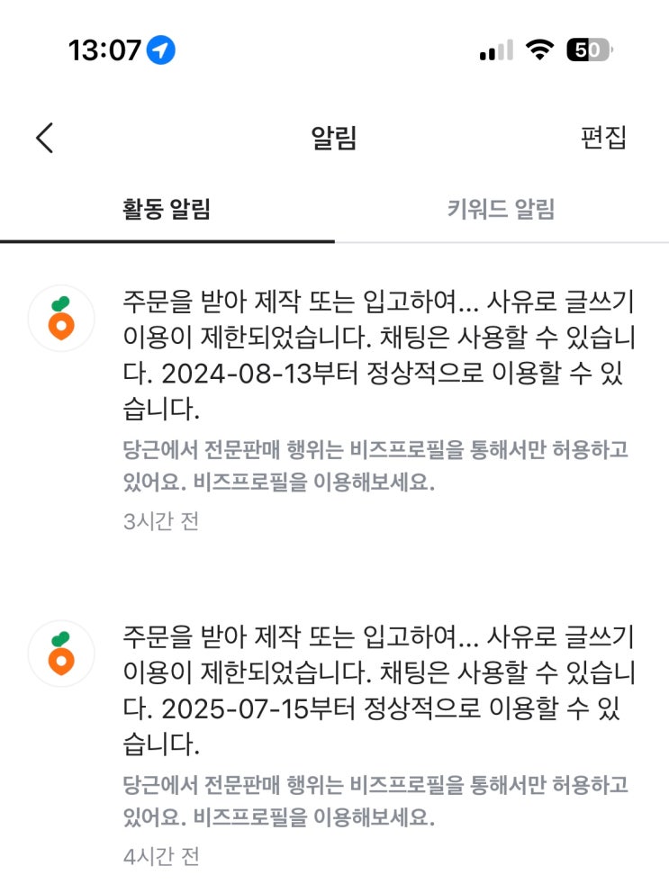 당근마켓 허위신고로 이용 제한되었다가 벗어난 썰