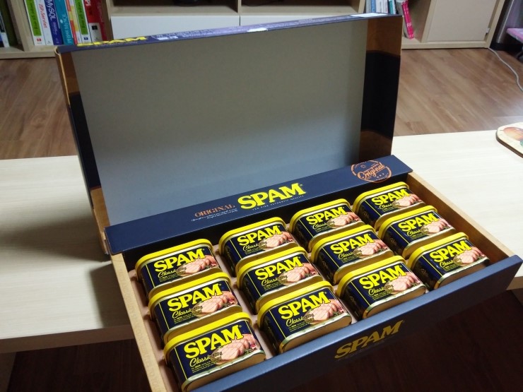 쌤들에게 설명절선물로 cj 스팸6호 준비했습니다