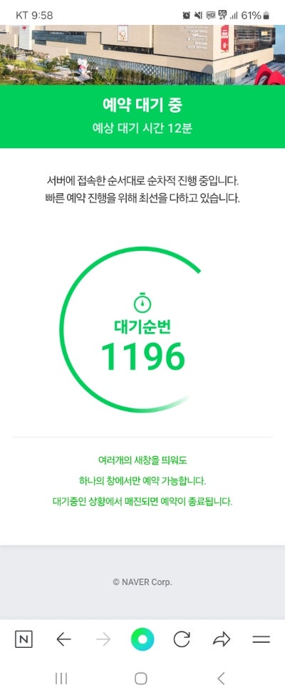 이게모라고.. 예약오픈 첫 날10시땡 하고 들어갔는데 대기순번1196? 금방되겠지 싶었는데 15분정도 걸렸어...