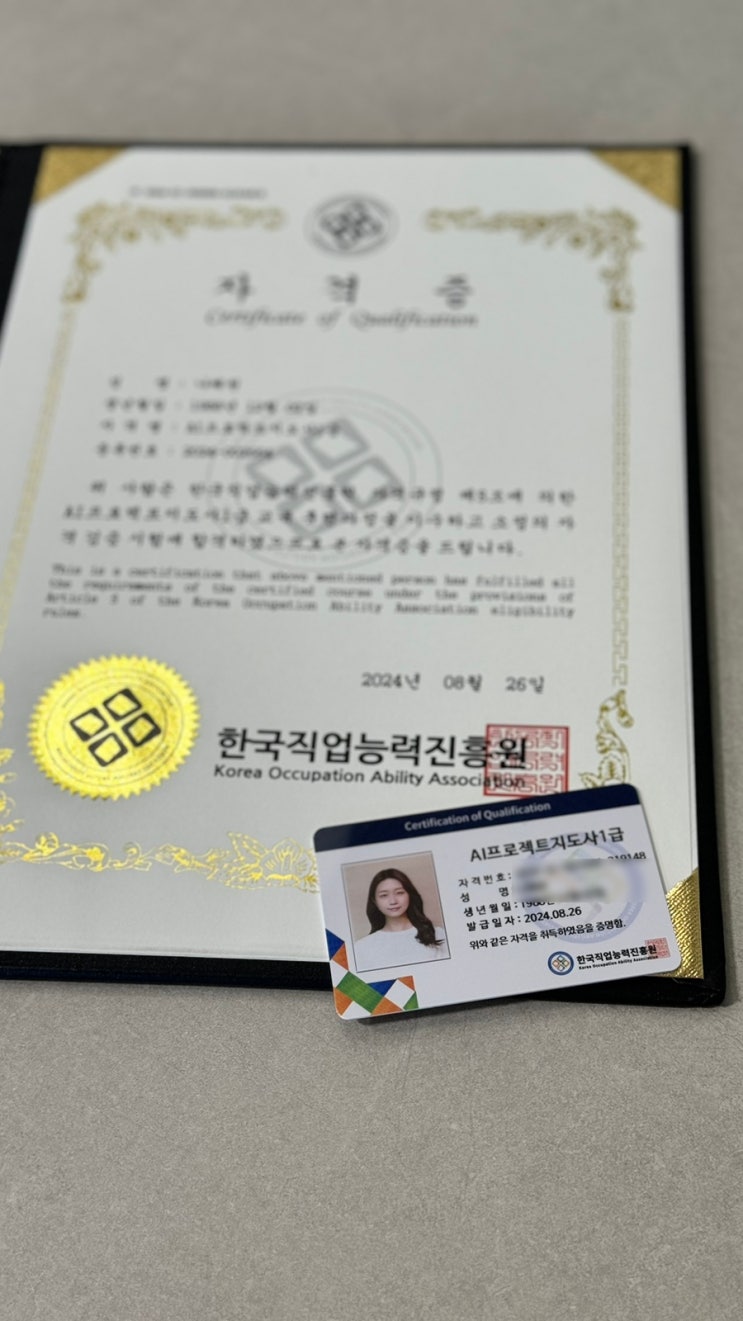 AI 프로젝트 지도사 자격증 한국직업능력진흥원 무료 강의로 쉽게 취득한 후기