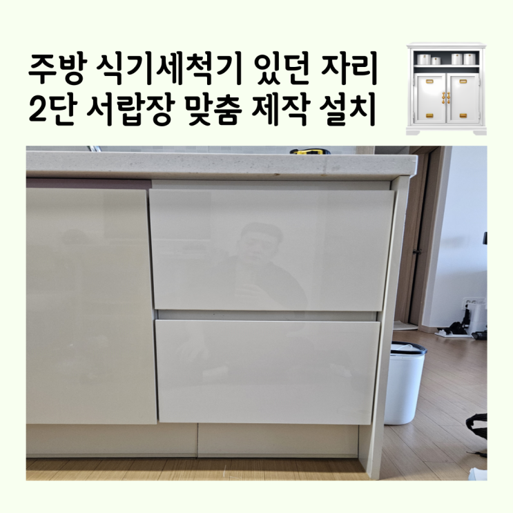식기세척기 있던 자리 2단 서랍장 맞춤 제작 설치