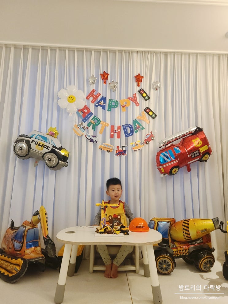 세돌 생일파티 :: 독감확진 / 중장비 풍선 / 중장비 케이크