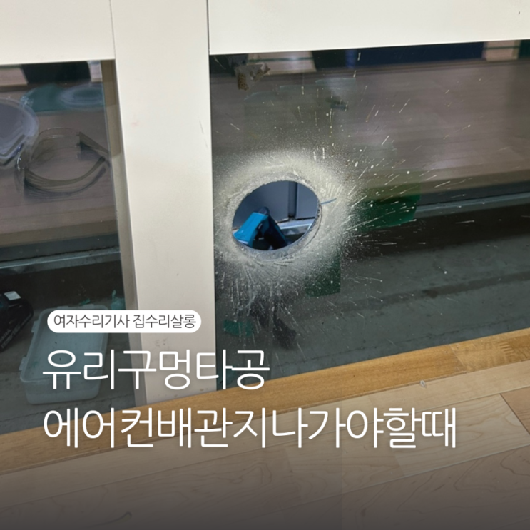 유리구멍타공 에어컨배관지나가야할때