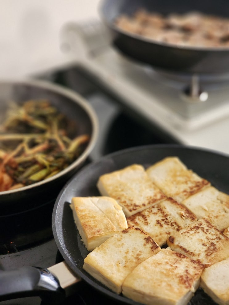 두부 들기름구이 삼겹살 김치볶음 두부삼합 마땅히 먹을 반찬이 없을때 얼른 만들어 먹기 쉬운 두부 들기름...