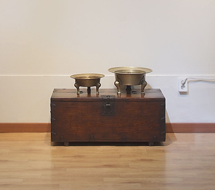 돈궤는 전통 고가구 티비다이로 쇼파테이블로 놋화로와 고가구인테리어 겸 한옥인테리어