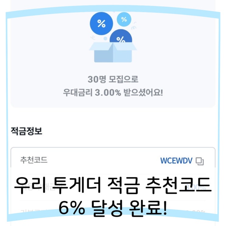 우리 투게더 적금 이율 6프로 코드공유 3월 28일까지