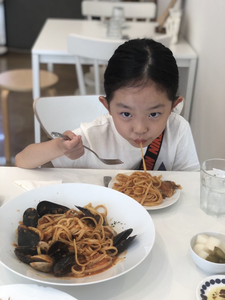 2020.6.12 엄마의 연차로인하여 동생은 유치원보내고 온라인수업한 딸램과 점심은 집앞 파스타집. 파스타를...