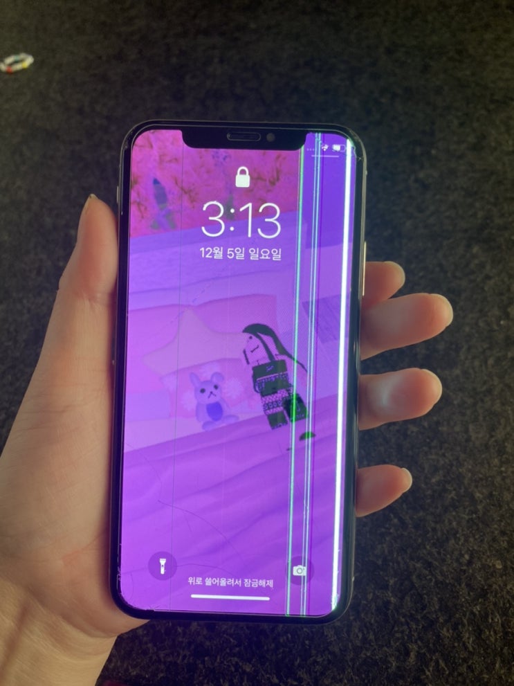 21.12.5 딸램 핸드폰 아이폰X 아이가 떨어트려서 깨져있던 핸드폰이였는데;; 물속에도 빠지면서.. 핸드폰...