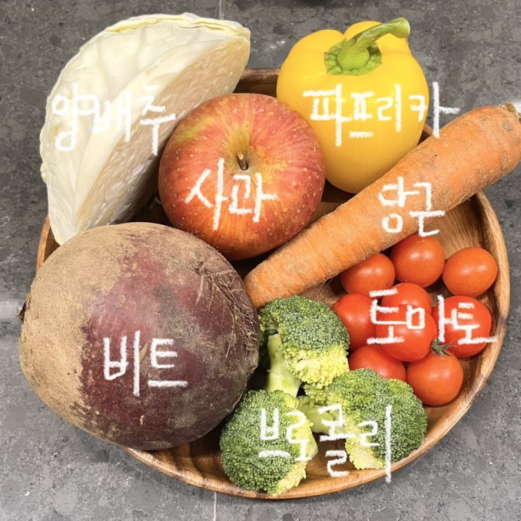 오늘은 쿡마스터플러스로 건강 주스 만들어 볼게요! 재료 준비 건강 주스를 만들기 위해 싱싱한 채소들을 ...