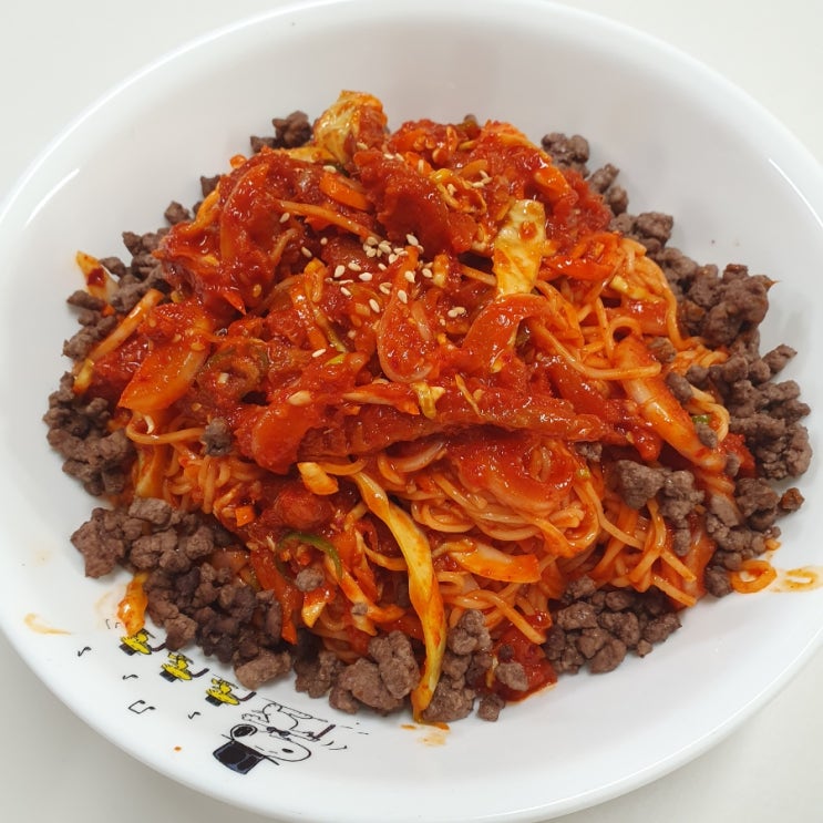 명태회무침 비빔국수 어른용은 고추장 간장 고춧가루 설탕 식초 파마늘 대충 때려넣고 명태회무침 넣고 양...
