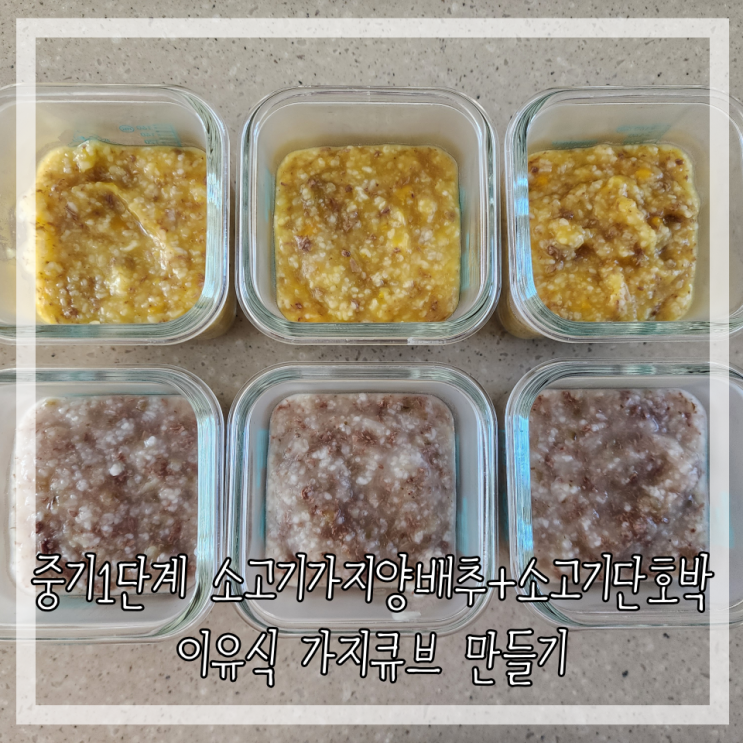 중기 1단계 소고기가지양배추죽+소고기단호박 이유식 가지큐브 만들기 잘 먹으면 너무 예쁘죠!? 너무 힘들...