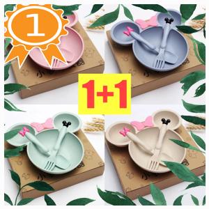 BUBA 1+1 아이사랑 캐릭터 이유식식판 아기식판 유아식판 밥그릇+스푼+포크 2세트, bb-422 블루, bb-422