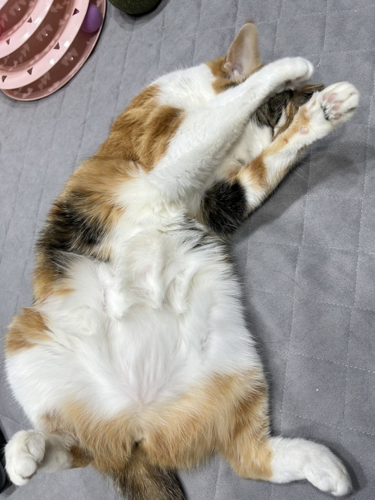 우리집 나름 장녀 별이는요~ 삼색아이치고는 털이 꽤 긴편이에요~ 다른날처럼 제앞에서 누워있는 별이를 보...
