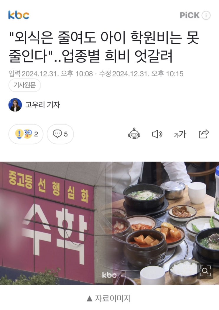 민간 소비금액 2% 감소 음식점 소비감소 KB카드 기준 전월대비 4% 감소 삼성카드 기준 전년대비 4.2% 감...
