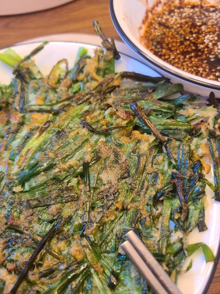 유난히 비가 많이 온 한주 비오는 날은 부추전이지 부추95 부침가루5의 신의비율ㅠ 최고야 우럼마? V&a...