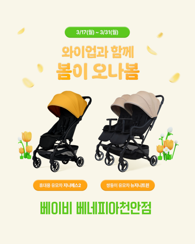 ? 와이업 지니에스2 봄이오나봄? #와이업 #휴대용유모차 #지니에스2 #국민휴대용유모차 봄맞이 이벤...