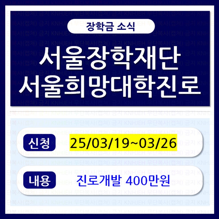 ★무단복사(캡쳐)금지★ 안녕하세요~~ 오늘은 서울장학재단의 서울희망대학진로장학금 25년 장학생 선발 소...