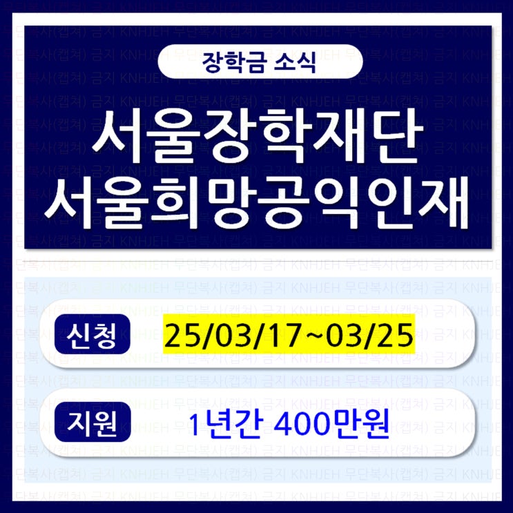 ★무단복사(캡쳐)금지★ 안녕하세요~~ 오늘은 서울장학재단의 "25년 서울 희망 공익인재 장학금 장학...