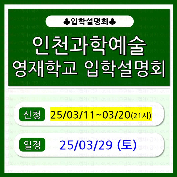 ★무단복사(캡쳐)금지★ 안녕하세요~~~ 오늘은 현재 사전신청을 받고 있는 "인천과학예술영재학교의 2...